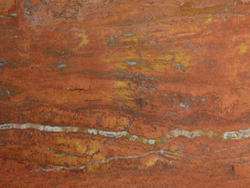 - Travertin Rot (Rosso): Ein ausdrucksstarker Travertin mit warmen, rötlichen bis terrakottafarbenen Nuancen. Er wird gerne als Akzentstein oder für mediterrane Terrassen verwendet, um ein besonders südländisches Flair zu erzeugen.